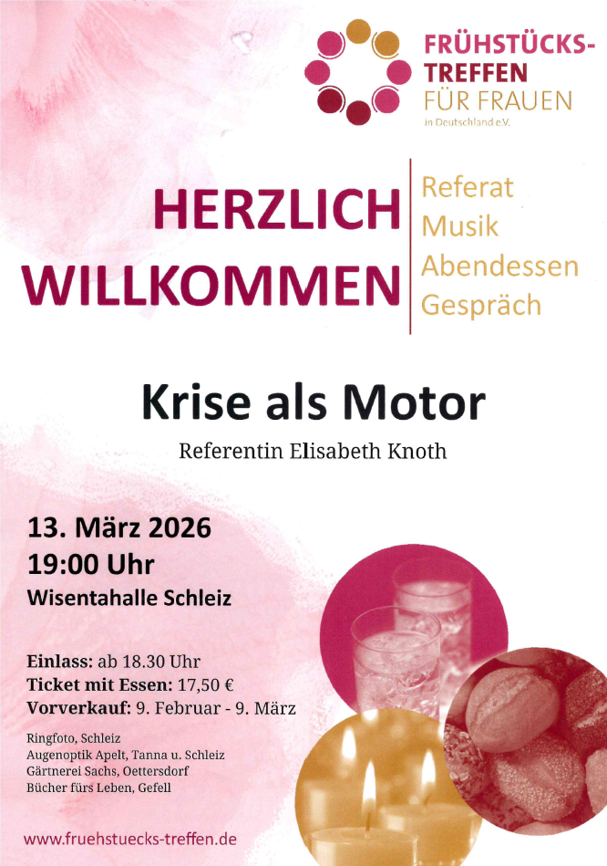 Gefrühstückt wird wieder am Abend Schon gut bekannt ist das Frühstückstreffen für Frauen am Abend in Schleiz. Schon über 20 Jahre laden christliche Frauen aus der Region neugierige und aufgeschlossene […]